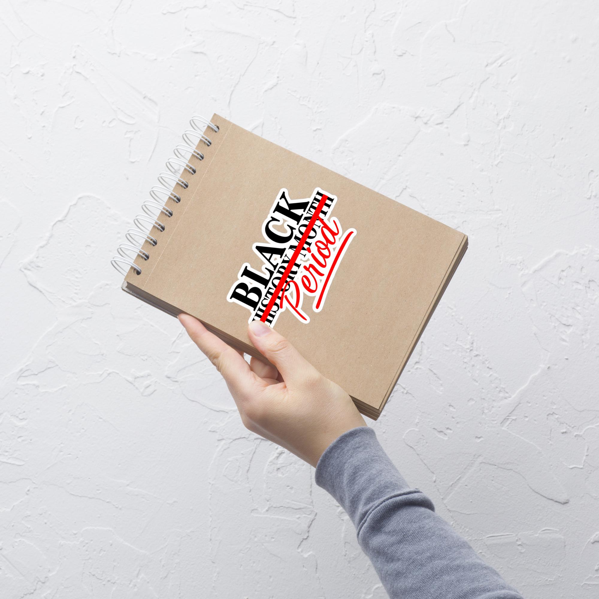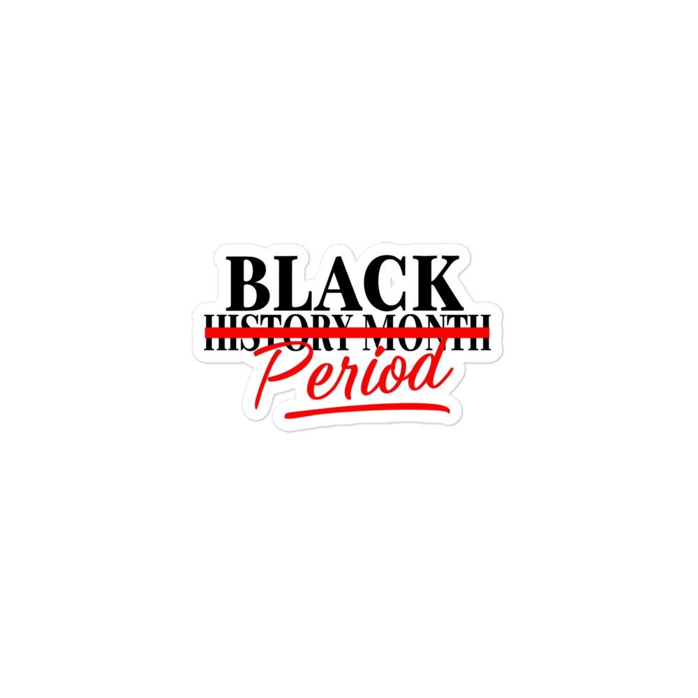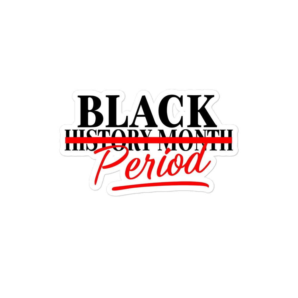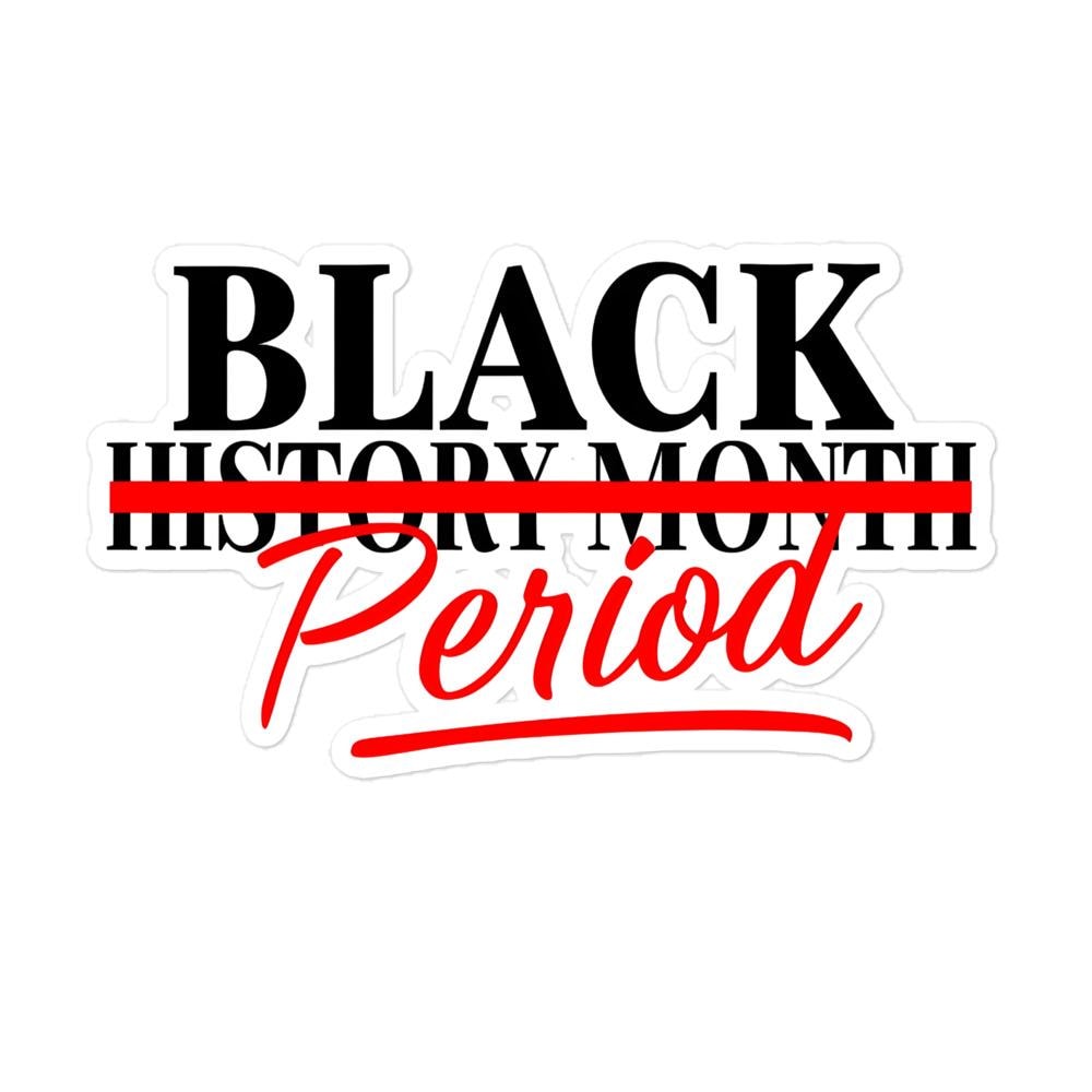 Make a bold statement with this "Black History Month . PERIOD." sticker! Featuring a striking red strikethrough over “Month” with “PERIOD.” standing loud and proud, this sticker is a powerful reminder that Black history isn’t just for February—it’s every day, all year long.