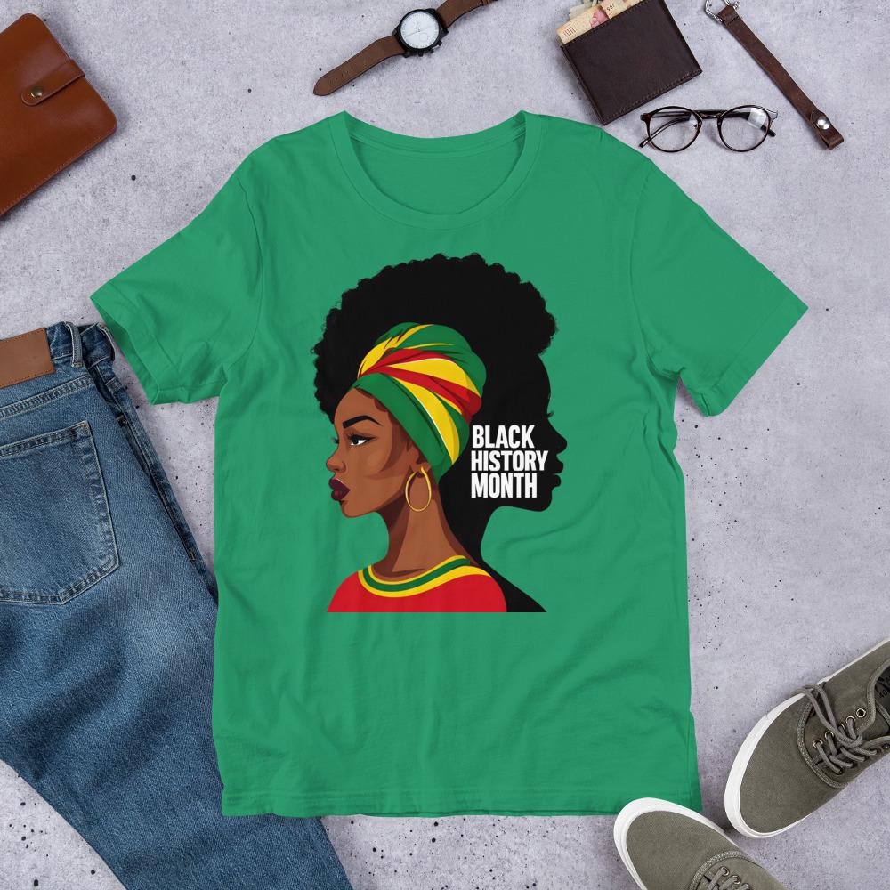 This stunning Black History Month T-shirt is designed to showcase the beauty, strength, and resilience of Black women. Featuring: